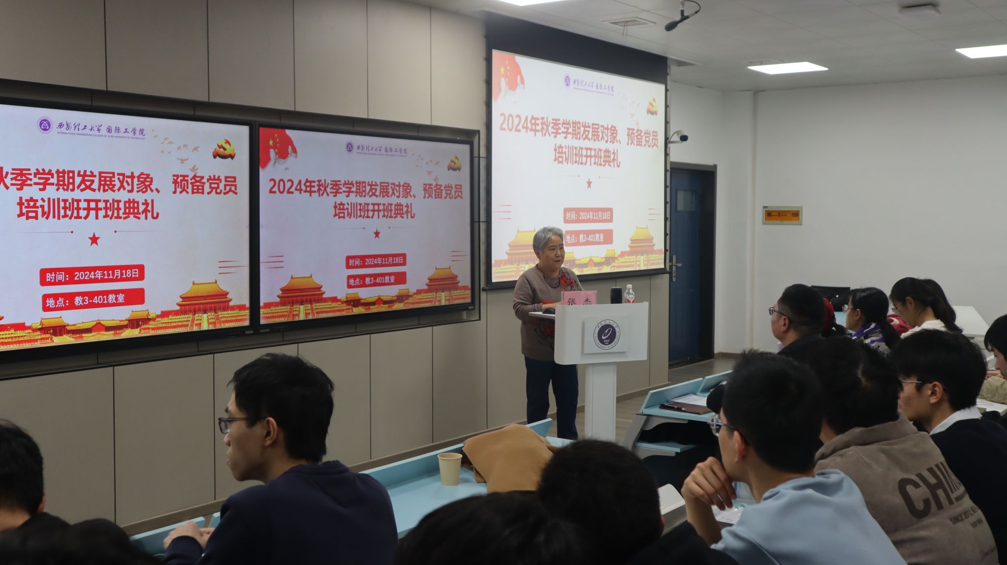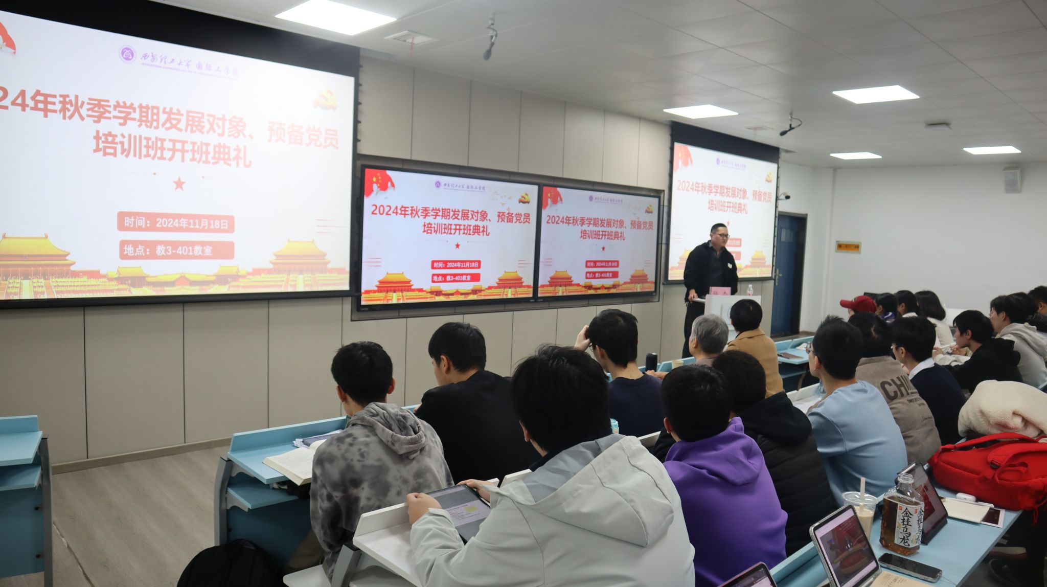 11月18日下午,公司在教3-401教室组织2024年秋季学期党员发展对象培训开班仪式。仪式在庄严的国歌声中拉开序幕,员工党建负责人张小飞介绍了本次培训的方案安排和纪律要求,参训学员代表计H221班刘鸿锐同学发言并郑重承诺:将珍惜培训机会,认真学习党的方针路线,不断增强政治意识,以实际行动践行党的宗旨,努力成为合格的社会主义建设者和接班人。永利集团304官网书记、经理杨媛做开班动员讲话并提出三点要求:一是在思想政治上,要提高思想认识,主动加强思想政治理论学习,关心国家大事;二是在能力素质上,要树立远大理想目标,勇担时代责任,锤炼过硬本领,在奋斗实践中增长才干;三是在人格品质上,要以优秀党员的标准严格要求自己,发挥先锋模范带头作用,用实际行动践行党的初心和使命。