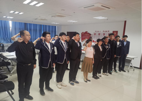 宣誓仪式在庄严的《国际歌》中拉开序幕。全体党员整齐列队,在永利集团304官网直属党支部副书记张晓春同志的带领下,大家举起右拳,面对鲜红的党旗,庄严宣誓,一字一句,神圣坚定:“我宣誓,我志愿加入中国共产党,拥护党的纲领,遵守党的章程,履行党员义务……”。誓言声声铿锵、久久回荡在宣誓现场。