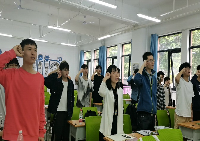 随后,金天语同学带领大家重温入团誓词。使在场团员青年时刻牢记自己是一名共青团员,将入团誓词铭记于心并转化为实际行动。师生畅谈过程中,高达敬老师呼吁同学们结合自身专业特点,将强国史与机械发展史相结合。勉励同学们青年强则国强,鼓励同学们继续为了中华民族伟大复兴不断努力,发愤图强。随后,冯雨老师通过分享张思德、黄文秀等优秀年轻党员的先进事例,深刻阐释了青年人应该有的模样,同时希望新时代的青年学子可以始终与党和人民事业发展联系在一起,扎根祖国各地,在青春里厚植家国情怀,凝练党史精神,赓续红色精神血脉。