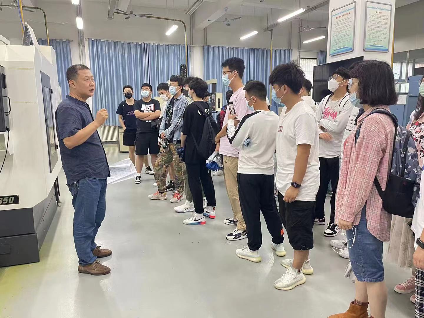 在工程训练中心老师们的带领和讲解下,同学们分别参观了数控车床、ART车队制造的方程式赛车以及中心各类实训场地和员工社团。同时,水下机器人以及航模队等社团还为同学们展示了社团制作的“鹦鹉螺号”与“湿地保护机器人”,并讲解了制作过程,极大的调动了同学们对科技的兴趣,激发了同学们敢于挑战的精神,引发了同学们的热烈讨论。