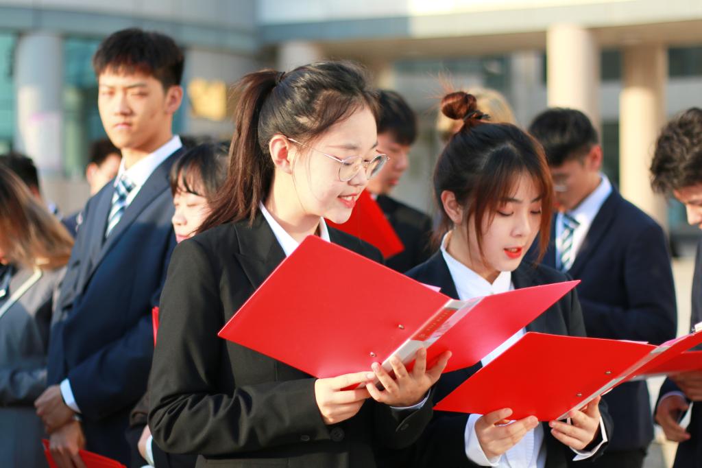 随后,永利集团304官网团委书记冯雨老师带领大家重温入团誓言。庄严的誓词句句铿锵有力,字字掷地有声。求索的前途遥遥,追梦的长路漫漫,也坎坷,也艰险,希望我们每个人都拥有自强不息的精神,点燃不熄的火炬,披荆斩棘,勇往直前。重温誓词后,永利集团304官网全体师生合唱《没有共产党就没有新中国》。嘹亮的歌声回响在西理的校园之中,也唱进了国工学子的心中,谨记“祖国”、“荣誉”、“责任”校训,誓与公司共成长,同与党共历练,与时代共同进步。