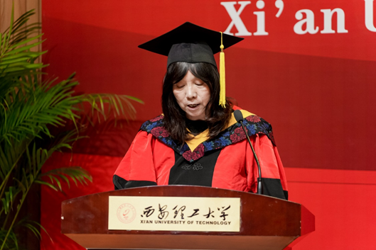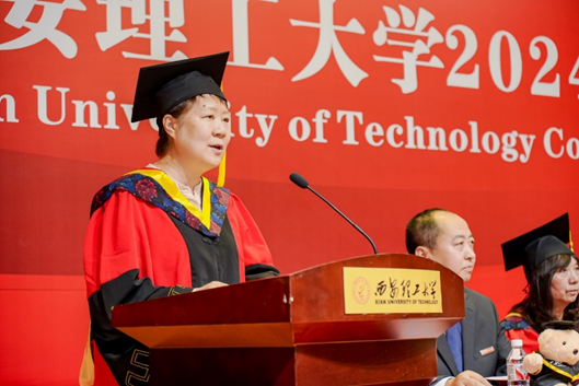 教师代表、电子科学与技术专业负责人余宁梅教授则勉励毕业生们保持学习热情,勇于追梦,实现自我价值。
