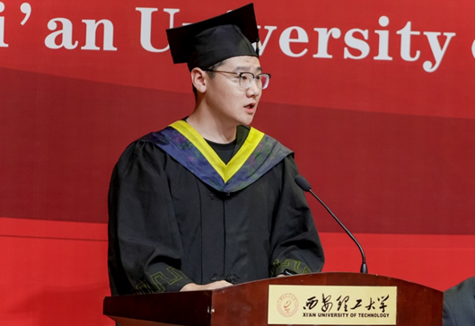 毕业生代表张海龙回顾了大学时光,表示将铭记母校的教诲,以更加饱满的热情投入到未来的工作和生活中去。