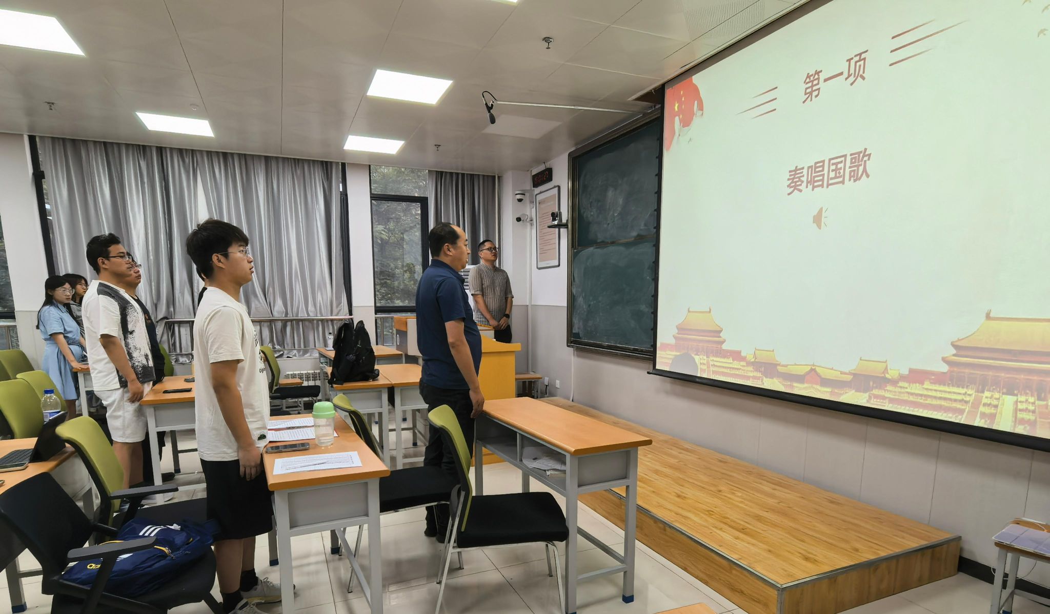 开班仪式在庄严的国歌声中拉开序幕。全体起立,奏唱国歌,表达对祖国的热爱与敬仰。雄壮的旋律激发了在场每一个人的爱国情怀,也为整个仪式奠定了庄重而热烈的氛围。