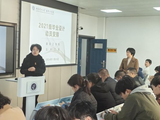 为切实提高毕业环节教学效果,做好2025届毕业实践教学环节工作,11月25日上午10点,公司土木工程专业在教3楼401教室召开毕业设计动员会。公司土木工程2021级全体员工参加了动员会,出席动员会的老师有永利集团304官网土木工程专业负责人党发宁教授、专业秘书陈雅琴副教授、土建公司土木系副主任崔晓玲副教授、土木系副主任李晓蕾副教授、岩土所副所长王莉平副教授、土建公司司建辉教授、潘秀珍副教授、刘骁骁副教授、姚泽良副教授、王丽琴副教授、佘芳涛副教授、姚显春副教授,土木系教师李慎、杜宁军、李瑞文、赵越、黄大观、土建公司科研秘书马煜东老师,会议由国工院土木工程专业秘书陈雅琴主持。