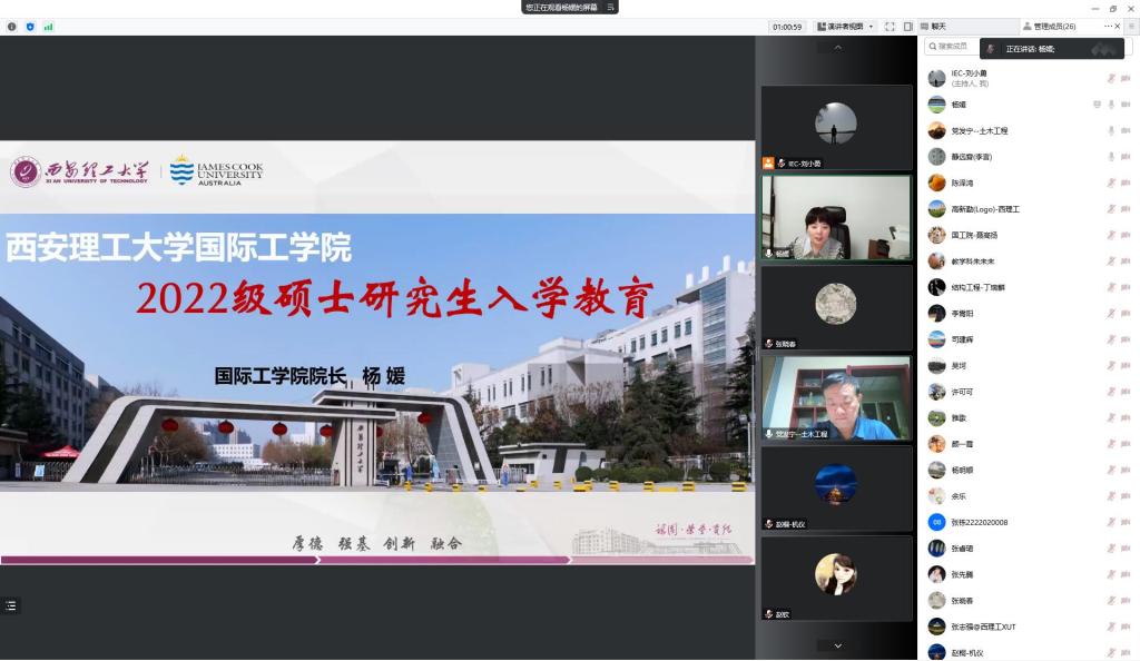 为帮助公司2022级硕士研究生尽快适应研究生阶段的学习与生活,进一步做好入学准备,9月16日晚,公司以线上视频的方式召开了2022级硕士研究生入学教育培训会,参会的有公司名誉经理李言教授,公司书记、经理杨媛教授、全体2022级硕士研究生导师和公司相关科室老师。会议由公司副书记、副经理张晓春主持。