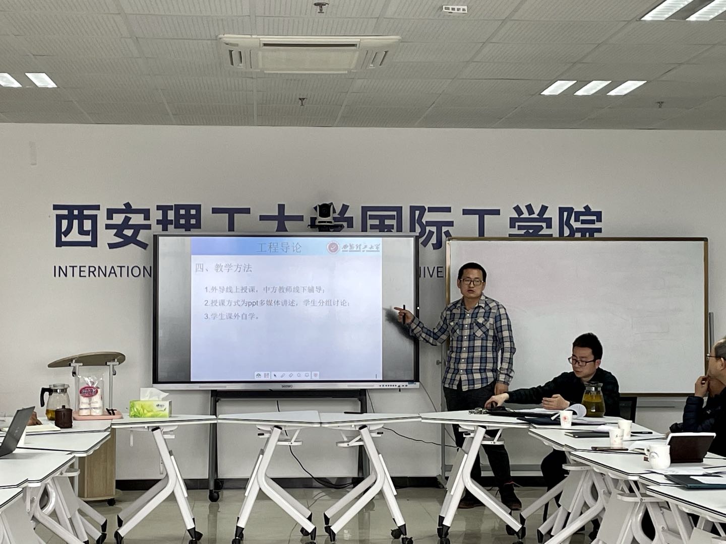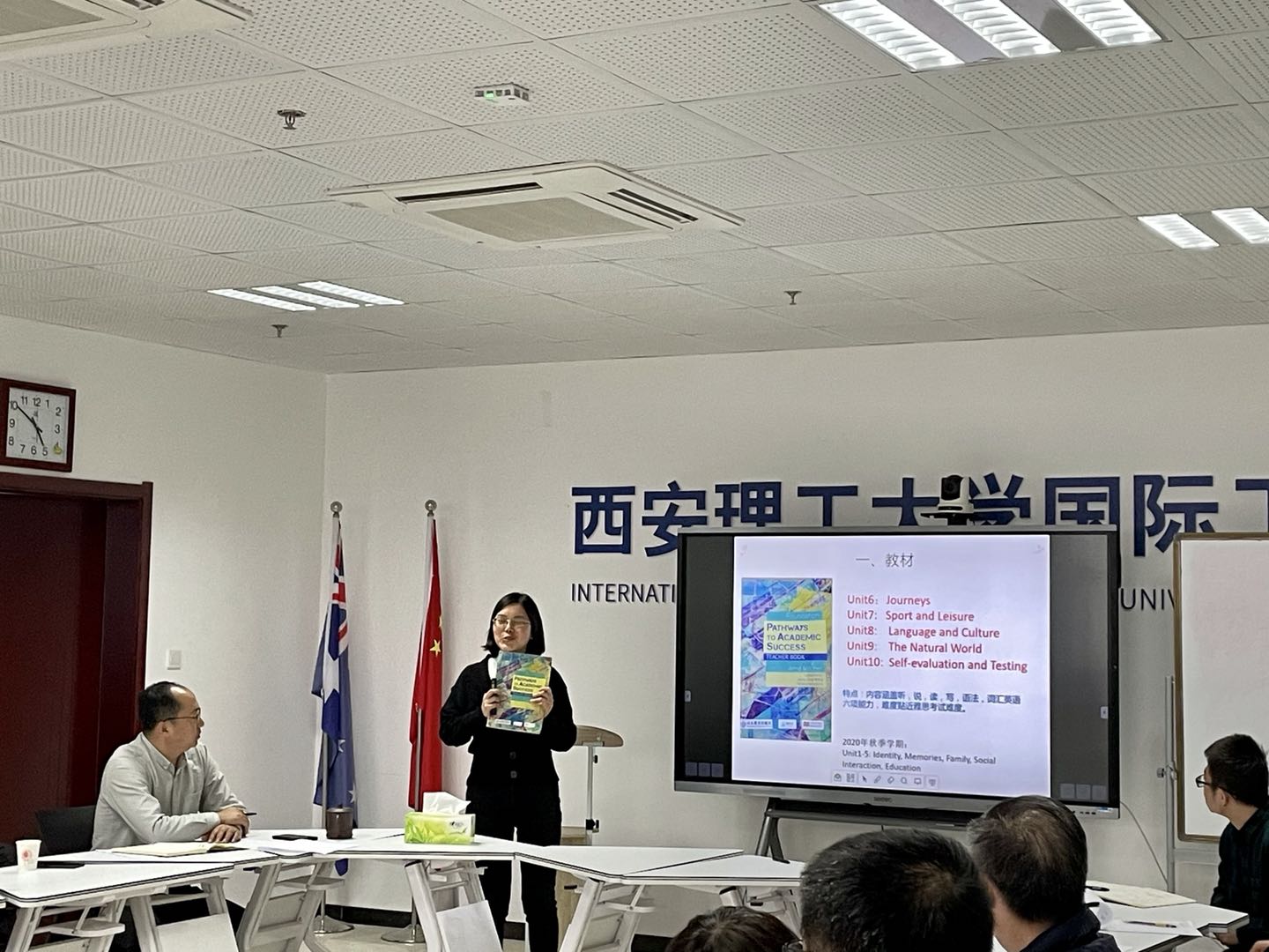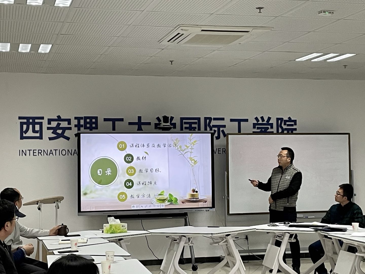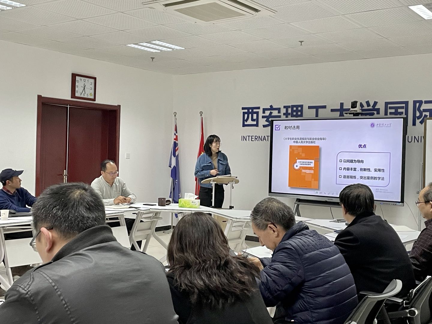 任课教师们按以课程组为单位精心准备,依次进行了说课,从课程特点、教学目标、教材选用、教学方法、课程思政融入、课程考核等多方面进行了分享和交流,重点阐述了如何针对课程特点提升员工自主学习能力以及体现国际化教育等内容。上学期已经带过公司课程的教师,结合员工特点给其他新任教师分享了教学经验,同时介绍本学期将如何改进自己的教学方法。