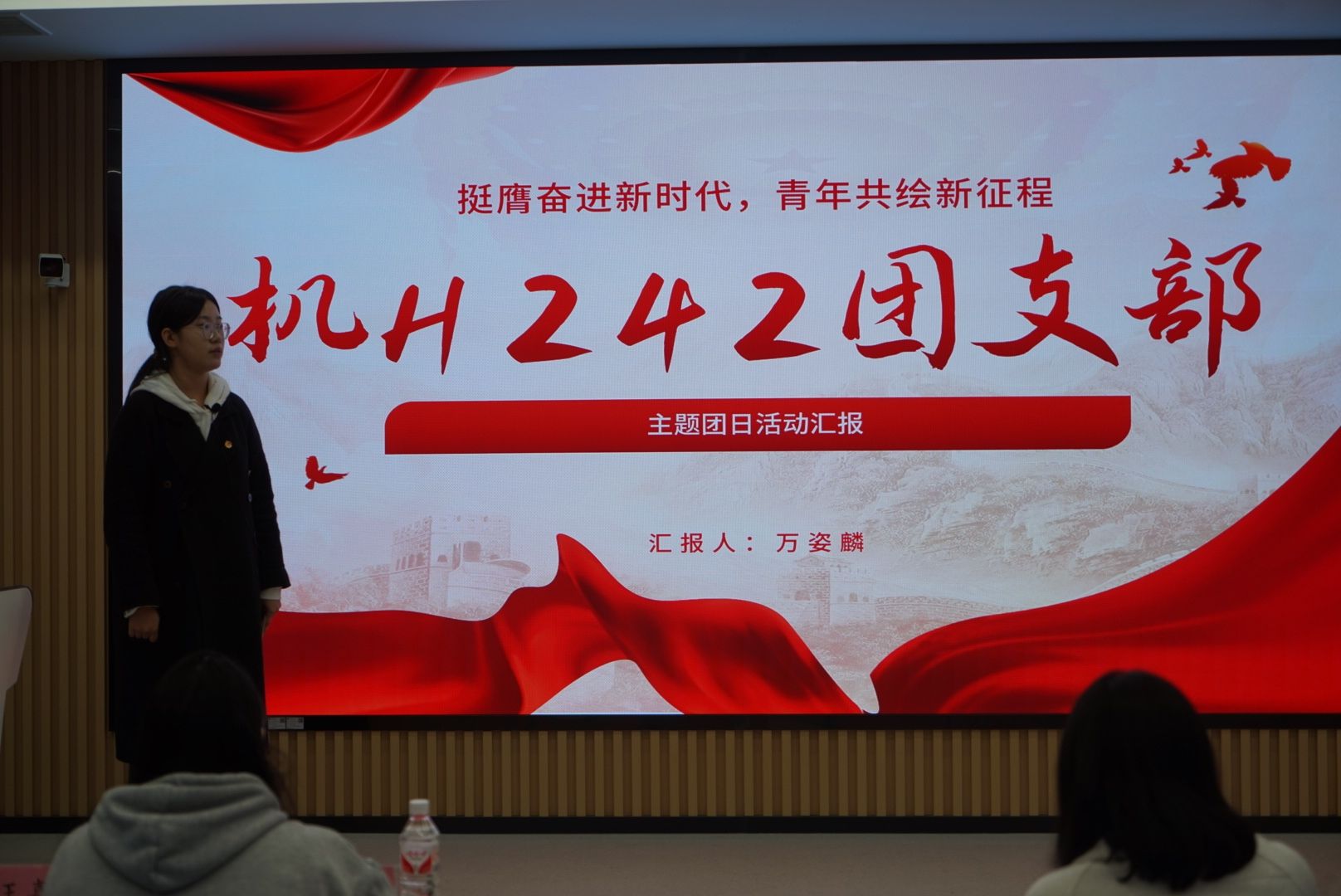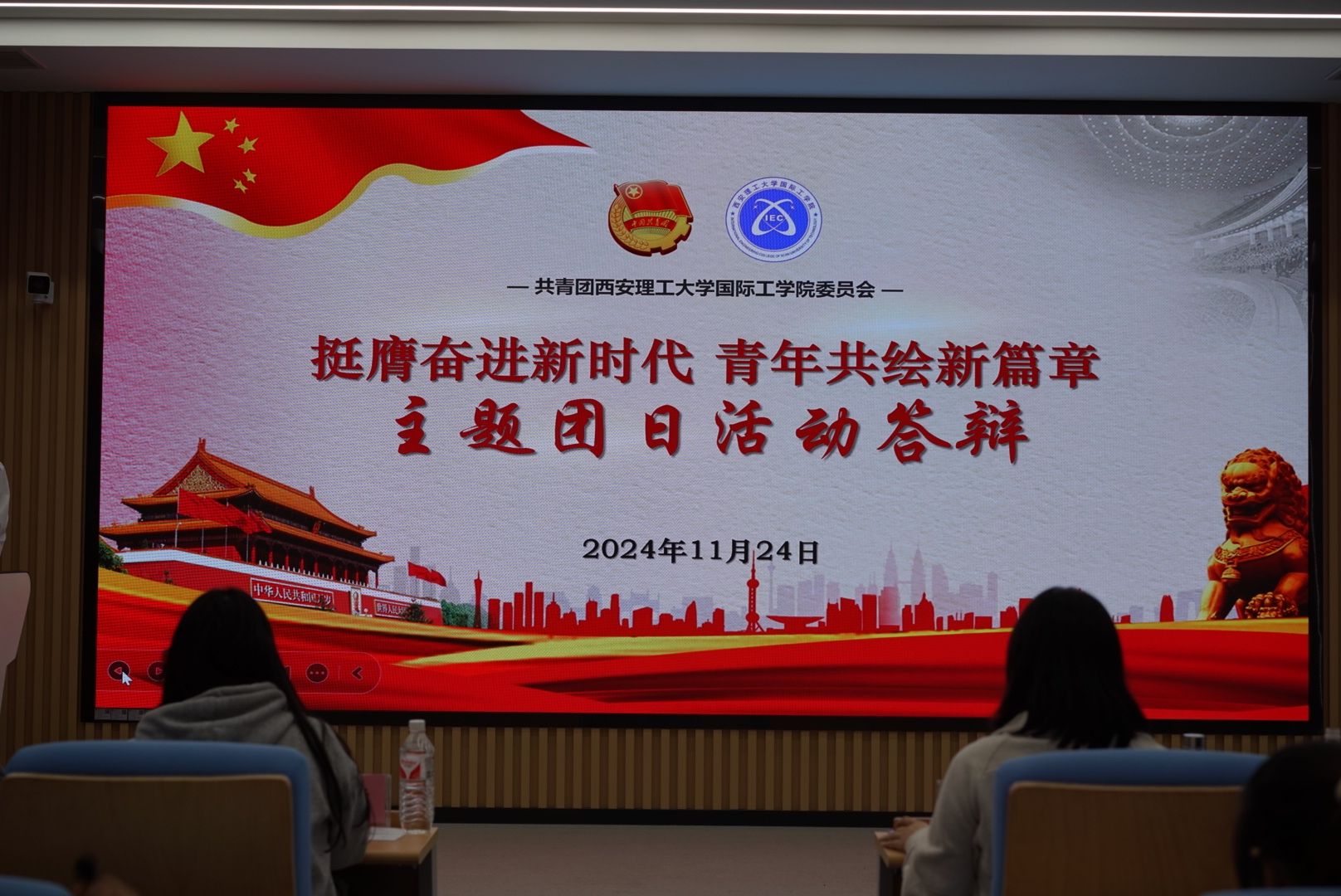 答辩过程中,各团支书依次展开汇报。他们分别从团日活动前的宣传准备工作、设计构思活动内容、活动开展过程以及活动后的总结等方面进行了汇报。各团支部的活动精彩纷呈,通过参观西安事变纪念馆、横幅按手印签名留念、红色知识问答等活动,让同学们积极参与到团日活动中,同时也让同学们深刻认识到应先立足自身,努力学好专业知识,而后为祖国建设添砖加瓦;同时积极向党组织靠拢,在新征程上踔厉奋发,争做有理想、有担当、能吃苦的新时代青年。