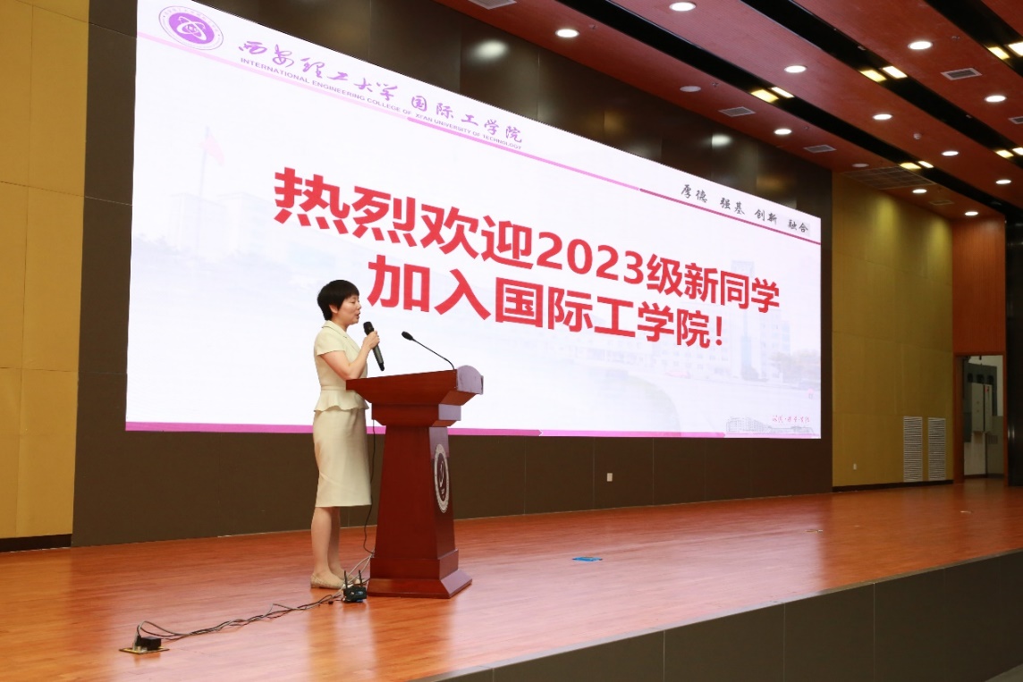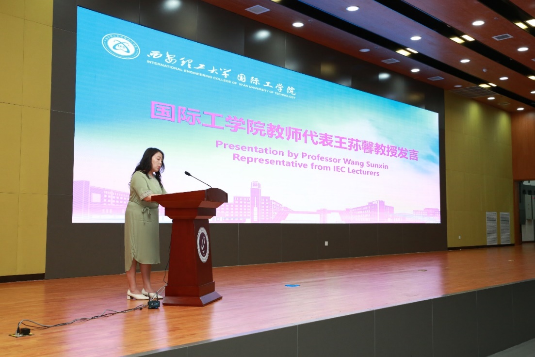公司教师代表王荪馨教授寄语新生,希望大家珍惜宝贵的大学时光,树立远大的目标、勇敢面对挑战、不断追求卓越。