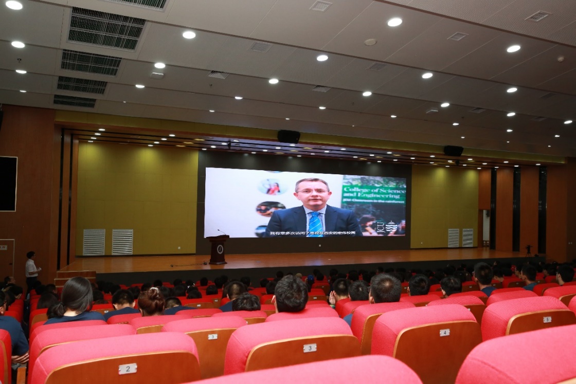 詹姆斯库克大学副董事长Marcus Lane教授为新生专门录制了祝福视频,他在讲话中希望同学们充分利用两校合作平台所提供的丰富的学习资源和优质的支持服务,通过国际化课程学习,融入跨文化的学习环境,拓宽全球视野,积极提升英语水平和专业素养,期待早日与同学们见面。