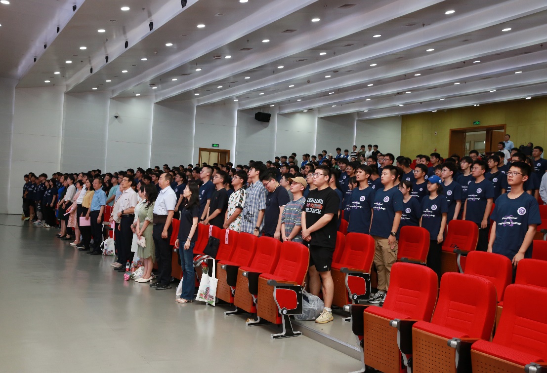 庄严的国歌声中,2023级新生开学典礼拉开帷幕。